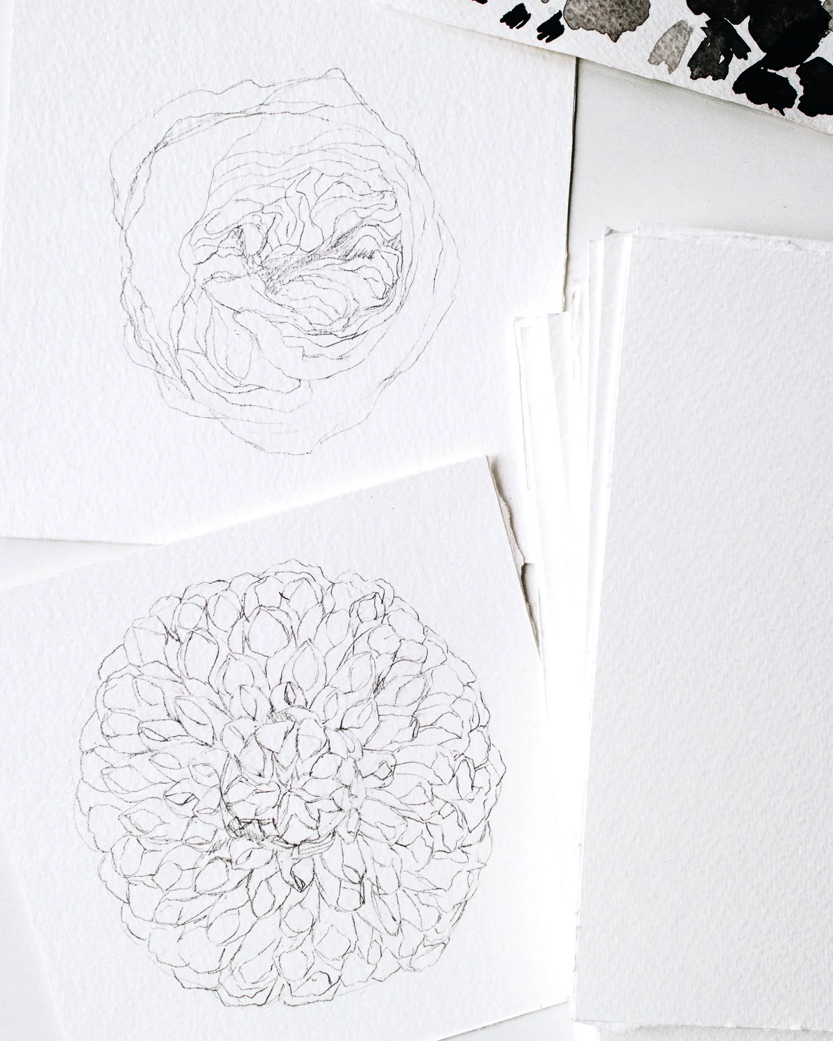 Studying flowers and turning them into more abstract, graphic artworks was a challenge that I was happy to take on. Usually my watercolor illustrations are carefully planned out and highly detailed, but this time the goal was to plan less and enjoy the ink flow more.